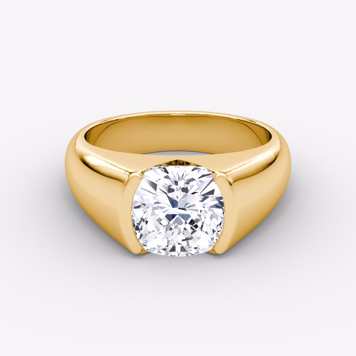 The Statement Signet solitaire in 18k yellow gold with a cushion diamond