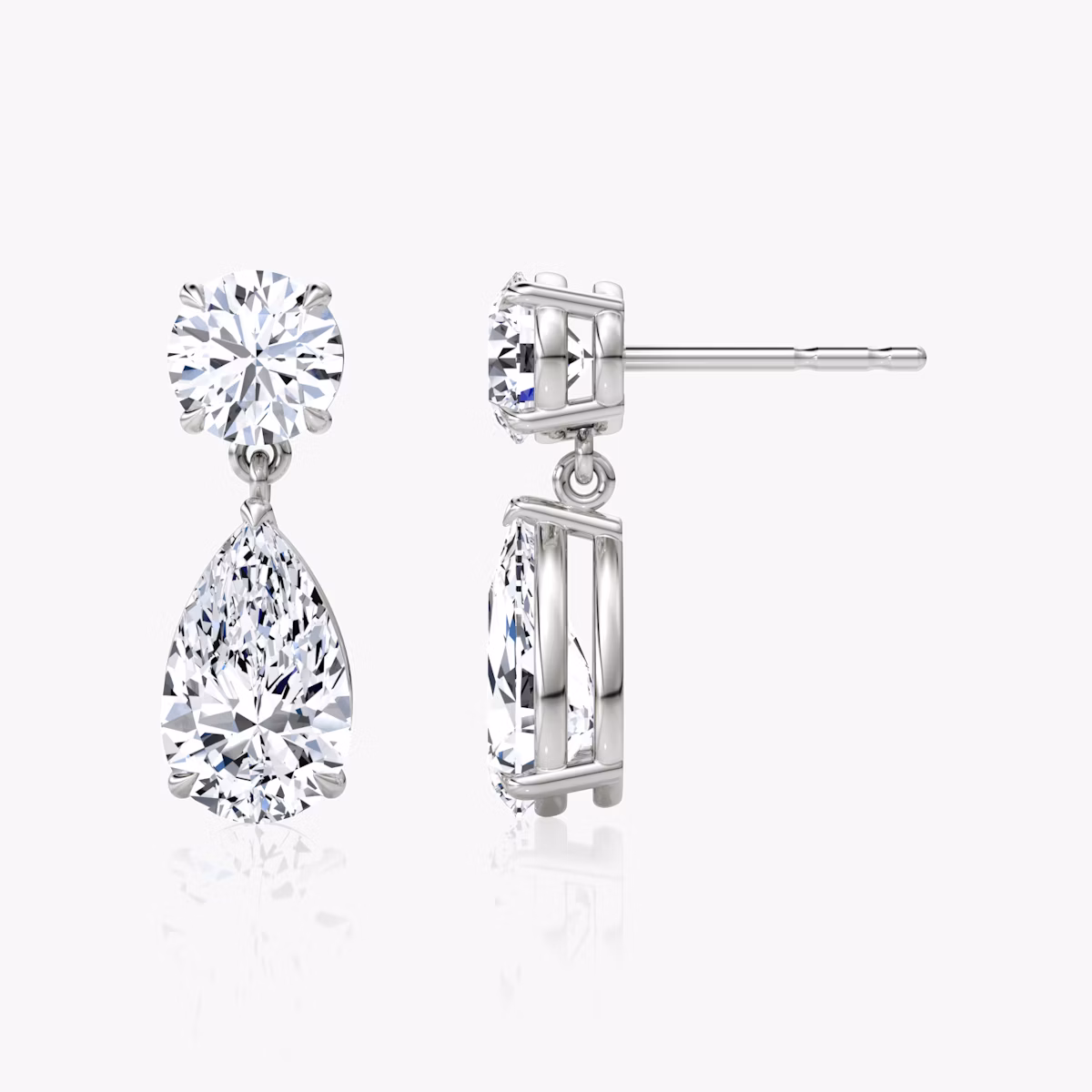 Duo Drop Earring | pear+round-brilliant | 14k | White Gold